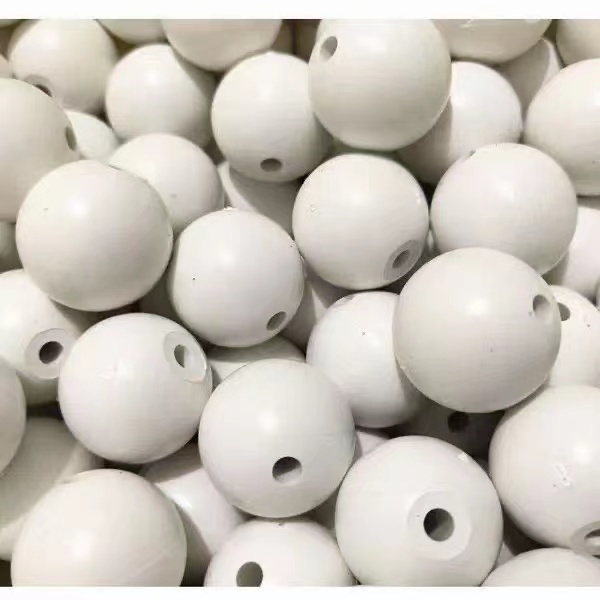 Le sfere di plastica cave sono realizzate in plastica di polipropilene e formate in forme sferiche. C'è un anello di rinforzo lungo l'intera circonferenza del centro della palla, con dodici lobi sopra e sotto l'anello, disposti radialmente lungo l'asse centrale. Sono adatti alle torri di deaerazione per l'anidride carbonica e altri dispositivi come le torri di reazione a contatto.